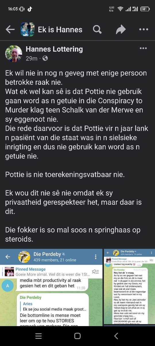 Hannes Lottering vra Pottie omverskoning oor vervalsde foto en onwaarhede deur hom versprei.